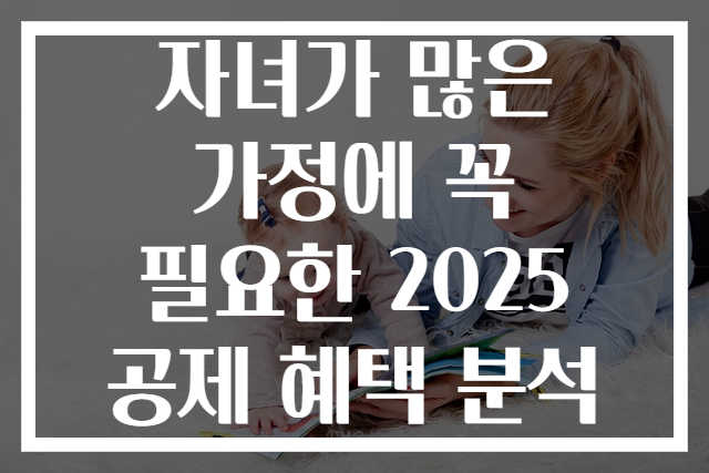 가족 구성원 수가 많은 가정은 다양한 경제적 부담과 함께 정부의 세제 혜택을 최대한 활용하는 것이 중요합니다. 특히, 자녀가 많은 가정은 자녀양육에 따른 세제 혜택과 공제 혜택이 복합적으로 적용될 수 있어 금융적 부담을 줄이고 가계 재정을 안정시키는 데 큰 도움이 됩니다. 이번 글에서는 2025년 변경된 세법 기준에 근거하여, 자녀가 많은 가정이 누릴 수 있는 주요 공제 혜택과 그 활용 방법을 상세히 분석하겠습니다.