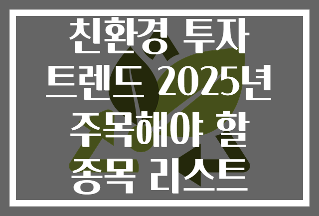 2. 2025년 주목해야 할 친환경 산업별 투자 종목 리스트