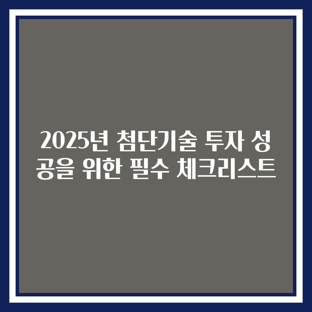 2025년 첨단기술 투자 성공을 위한 필수 체크리스트