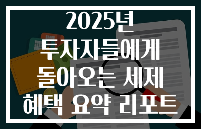 결론: 2025년 세제 혜택의 의미와 투자 전략
